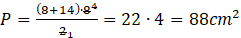 , gdzie a, b oznaczają podstawy trapezu, h oznacza wysokość trapezu.