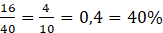 Figura D składa się z 4 ∙ 10 = 40 kratek. Zamalowano 16 kratek, zatem