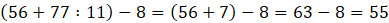 B. (56 + 77 : 11) – 8