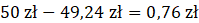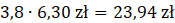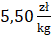 Żeby obliczyć cenę każdego produktu, pomnóż jego masę przez cenę za kilogram. Potem dodaj ceny produktów do siebie.