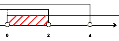 x musi być zatem mniejszy od 4 i od 2. Rozwiązaniem jest przecięcie (część wspólna) zbiorów poszczególnych rozwiązań, zatem przedział