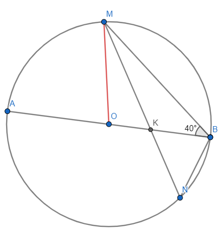 W tym zadaniu musisz wyznaczyć kąt MNB, wiedząc, iż średnica AB i cięciwa MN okręgu przecinają się w punkcie K, a kąt MBA ma miarę