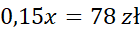 Oblicz najpierw, o ile wzrósł podatek VAT oraz oznacz przez niewiadomą x cenę netto. Wzrost ceny towaru odpowiada zmianie VAT-u. Pamiętaj, że szukaną liczbę możemy odnaleźć, mnożąc procent przez całość, na przykład: