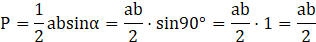 Gdy mamy podany kąt między dwoma bokami trójkąta, to jego pole jest równe w połowie iloczynowi długości tych boków i sinusa kąta zawartego między nimi,