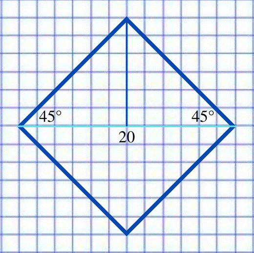 Zauważ, że gdy dorysujemy do drugiego trójkąta taki sam trójkąt, powstanie kwadrat (wszystkie kąty figury będą miały 90° oraz równe boki). Bok AD stanowi zatem przekątną powstałego kwadratu, a wysokość BC stanowi połowę przekątnej, czyli jej długość to