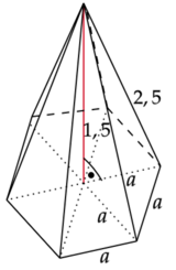 Połowa najdłuższej przekątnej sześciokąta, czyli długość jego boku, wysokość ostrosłupa i długość jego krawędzi bocznej tworzą trójkąt prostokątny. Skorzystaj z twierdzenia Pitagorasa i oblicz długość