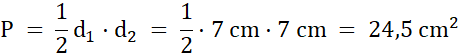 Policz pole kwadratu, którego przekątna jest równa 7 cm.