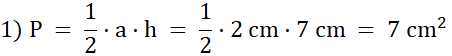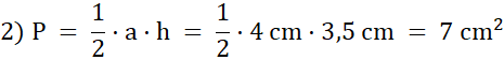 Oblicz pola trójkątów, jeśli prostokąty mają wymiary 4 cm x 7 cm.