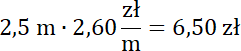 Pomóż cenę za metr przez długość kupowanej listewki. Przy mnożeniu ułamków dziesiętnych zapomnij na chwilę o przecinku. W końcowym wyniku zostaw tyle miejsc po przecinku, ile w sumie miejsc po przecinku miały czynniki.