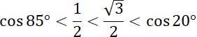 cos 85° < cos 60° < cos 30° < cos 20°, więc: