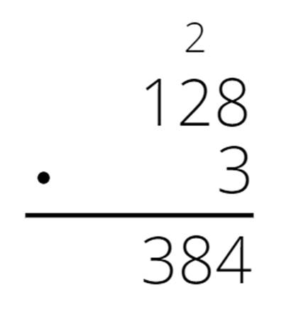 Pomnóż każdą cyfrę pierwszego czynnika, zaczynając od jedności. Jeśli iloczyn będzie dwucyfrowy, to przenieś cyfrę dziesiątek do następnej kolumny, a cyfrę jedności przepisz pod kreską. W następnej kolumnie cyfrę dziesiątek z poprzedniej kolumny dodaj do iloczynu.
