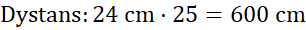 Oblicz prędkość Jacka w oraz gdy w ciągu 12 s pokonał 25 tip-topków, a długość jego stopy wynosi 24 cm.