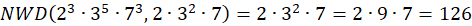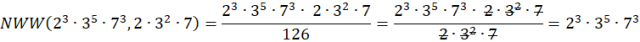 W tym zadaniu musisz obliczyć NWD i NWW liczb 23 ∙ 35 ∙ 73 i 2 ∙ 32 ∙ 7.