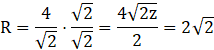 Jeżeli kąt między ramionami trójkąta równoramiennego ma miarę 45 to miara kąta środkowego, opartego na tym samym łuku co Kąt wpisany 45 ma miarę dwa razy większą. Wspomniany trójkąt jest prostokątny, o przeciwprostokątnej równej 4, która to jest równa