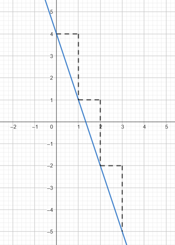 zauważ, że przecina ona oś OY w punkcie (0,4), a wzrost argumentu o jedną jednostkę odpowiada spadkowi funkcji o trzy jednostki i przedstaw to w układzie współrzędnych.