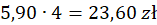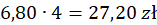 Oblicz cenę każdej butelki, jeśli byłaby sprzedawana w butelkach litrowych. Zauważ, że cenę butelek 500 ml musisz pomnożyć przez 2, a butelek 250 ml przez 4.
