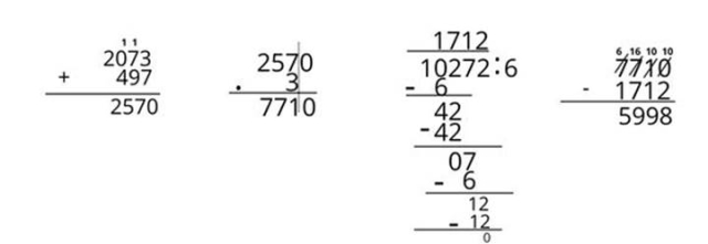 Oblicz 3 × (2073 + 497) – 10 272 : 6, pamiętając o kolejności wykonywania działań.