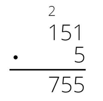 Pomnóż każdą cyfrę pierwszego czynnika, zaczynając od jedności. Jeśli iloczyn będzie dwucyfrowy, to przenieś cyfrę dziesiątek do następnej kolumny, a cyfrę jedności przepisz pod kreską. W następnej kolumnie cyfrę dziesiątek z poprzedniej kolumny dodaj do iloczynu.