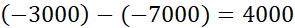 Zastanów się, ile trzeba odjąć od -3000, by otrzymać liczbę 4000. Wynik będzie dodatni, więc musisz wpisać liczbę ujemną, tak by 2 minusy dały plus.