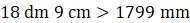 W tym zadaniu musisz porównać wartości 18 dm 9 cm i 1799 mm, 7 m 4 cm i 7040 mm.
