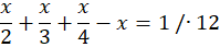 Należy uprościć równanie poprzez mnożenie obustronne przez liczbę 12, aby pozbyć się mianownika po lewej stronie równania. Następnie wykonujemy działania i grupujemy niewiadome po lewej, a pozostałe liczby po prawej stronie równania. Przy przenoszeniu między stronami równania należy zwrócić uwagę na zmianę znaku. Odczytujemy wynik i podstawiamy do wzoru