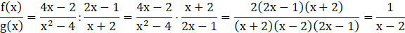 Wartości w mianowniku ułamka, muszą być niezerowe. Dla dowolnych liczb rzeczywistych znak ilorazu jest taki sam jak znak iloczynu.