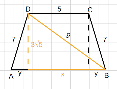 Zsumuj wartości x i y aby otrzymać długość dłuższej podstawy.