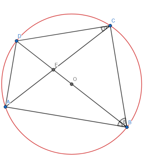Kąt α to kąt wpisany w okrąg, opisany na tym samym łuku co kąt
