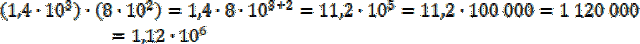 . Na koniec uzyskany wynik przedstaw w postaci dziesiętnej oraz notacji wykładniczej. Zauważ, że aby to zrobić musisz postawić przecinek w takim miejscu, aby otrzymać liczbę większą lub równą 1 i mniejszą od 10, a następnie pomnożyć ją przez 10 do takiej potęgi o ile przesunięto przecinek (jeśli w lewo to będzie to potęga dodatnia, jeśli w prawo to będzie to potęga ujemna).