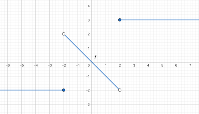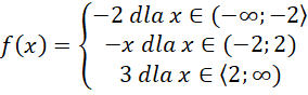 Rysowanie wykresu rozbij na trzy etapy. Najpierw naszkicuj wykres górnej i dolnej funkcji. Zauważ, że są one odcinkami równoległymi do osi OX na poziomach
