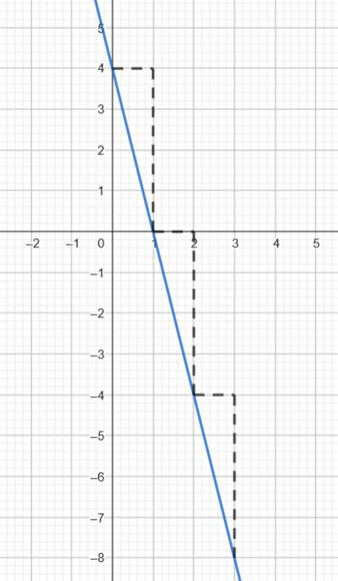 zauważ, że przecina ona oś OY w punkcie (0,4), a wzrost argumentu o jedną jednostkę odpowiada spadkowi funkcji o cztery jednostki i przedstaw to w układzie współrzędnych.