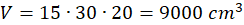 Oblicz objętość prostopadłościennej budowli o wymiarach 0,15 m ´ 0,3 m ´ 20 cm.