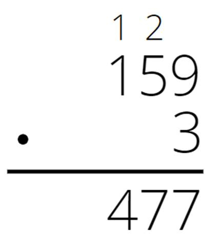 Pomnóż każdą cyfrę pierwszego czynnika, zaczynając od jedności. Jeśli iloczyn będzie dwucyfrowy, to przenieś cyfrę dziesiątek do następnej kolumny, a cyfrę jedności przepisz pod kreską. W następnej kolumnie cyfrę dziesiątek z poprzedniej kolumny dodaj do iloczynu.