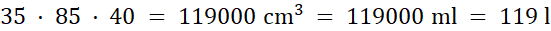 Oblicz objętość brył i podaj w litrach i mililitrach: 3,5 dm x 85 cm x 40 cm.