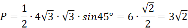 Skorzystaj ze wzoru na pole trójkąta, znając jego boki i miarę kąta zawartego między nimi: