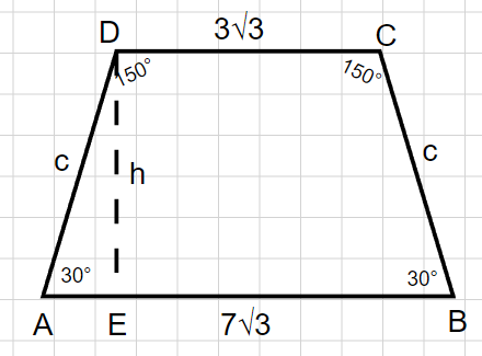 W tym ćwiczeniu musisz oblicz pole i obwód trapezu równoramiennego, wiedząc że jego krótsza podstawa ma długość