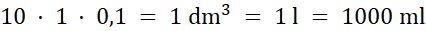 Oblicz objętość brył i podaj w litrach i mililitrach: 1 m x 1 dm x 1 cm.