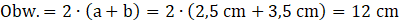 Obwód równoległoboku to suma długości i szerokości prostokąta pomnożona przez 2.