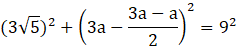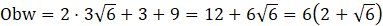 Wyznacz pole i obwód trapezu równoramiennego, jeżeli jedna z jego podstaw jest trzy razy dłuższa od drugiej, przekątna ma długość 9, a wysokość jest równa