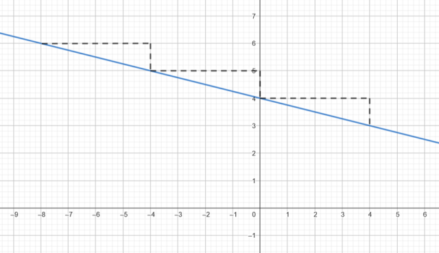 zauważ, że przecina ona oś OY w punkcie (0,4), a wzrost argumentu o cztery jednostki odpowiada spadkowi funkcji o jedną jednostkę i przedstaw to w układzie współrzędnych.