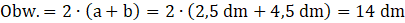Obwód równoległoboku to suma długości i szerokości prostokąta pomnożona przez 2.