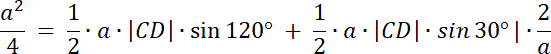 W tym zadaniu musisz określić pole trójkąta ABC i długość odcinka CD w zależności od boku a.