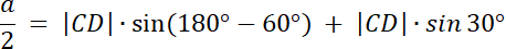 Skorzystaj z twierdzenia na pole trójkąta, które uwzględnia sinus kąta w trójkącie i oblicz pole trójkąta ABC. Zauważ, że po podzieleniu trójkąta ABC, przez prostą l, powstały dwa trójkąty, których suma pól jest równa polu trójkąta ABC. Wyprowadź zależność: