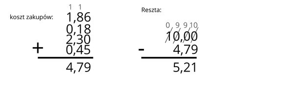 Korzystając z tabelki oblicz, ile reszty z 10 zł otrzyma Piotr, który zakupił 10 dag żółtego sera, 10 dag masła, chleb za 2,30 zł i bułkę za 0,45 zł.