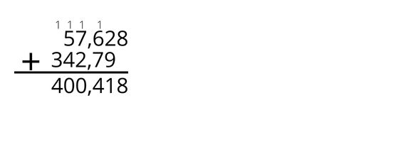Oblicz sumę liczb 57,628 i 342,79.