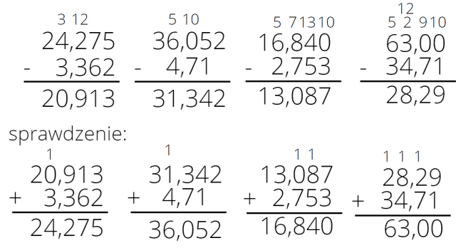 Poćwicz odejmowanie pisemne i sprawdź wynik dodawaniem.