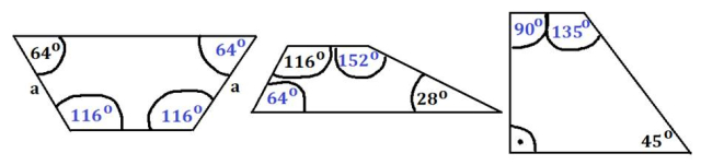 W każdym trapezie suma kątów przy jednym ramieniu wynosi 180º.