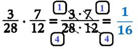 Obliczenia upraszczasz, skracając wartości ułamków.