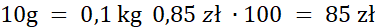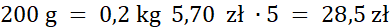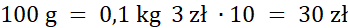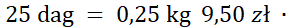 W tym zadaniu musisz obliczyć, ile kosztuje 1 kg z podanych towarów.