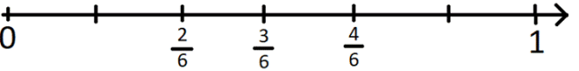 Zaznacz ułamki na osi oraz skróć je poniżej.